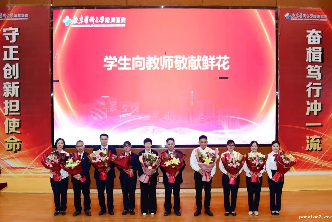 会上,学生代表向教师代表敬献鲜花,新进教师代表向荣休教师代表敬献鲜花。教师,是人类灵魂的工程师。在医院教育事业蓬勃发展的大潮中,涌现出无数优秀的教师代表,他们在讲台上奋斗一生,只为将“传道授业解惑”这一平凡而伟大的事业传承好、发扬好。